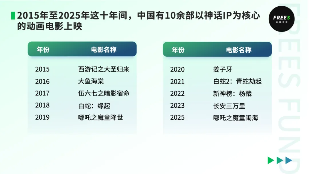 2015年至2025年这十年间,中国有10余部以神话IP为核心的动画电影上映,例如《西游记之大圣归来》《哪吒之魔童降世》系列、《白蛇》系列、《姜子牙》《新神榜:杨戬》等。