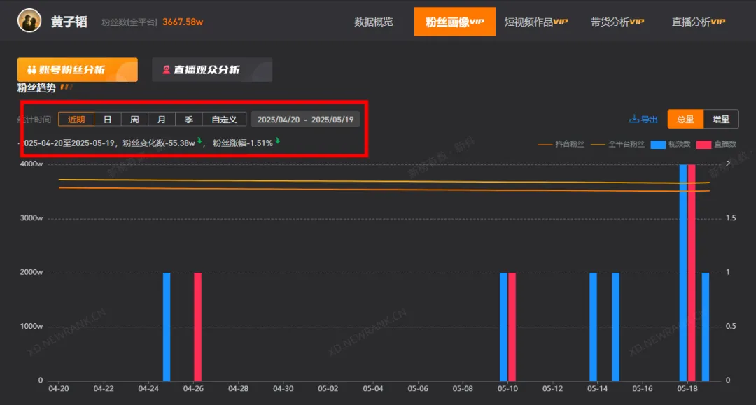 值得一提的是,在这场直播之前,黄子韬抖音账号已经出现持续掉粉的趋势,近30天掉粉55.38万。