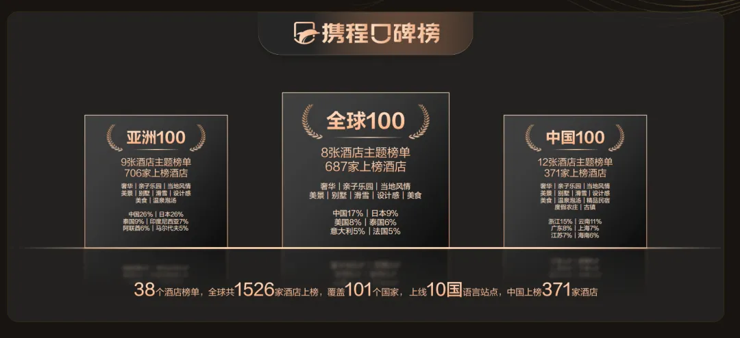 主要从流量、转化、效率三个维度。首先是全域流量激活,携程口碑榜单帮助入选酒店实现了20%以上的流量增量,现在很多用户,会直接通过携程的榜单频道来筛选酒店,各种类型的榜单,像亲子的、温泉的、度假的等不同主题。