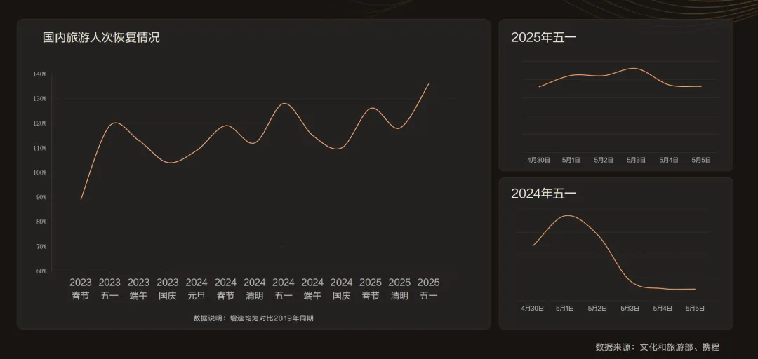 先从一组数据说起,2024年国内旅游人次,同比增长了14.8%,今年一季度国内旅游人次同比增长了26.4%,五一的旅游人次再次创了历史新高,从某种程度上反映出国人出行的意愿其实是在增强的。
