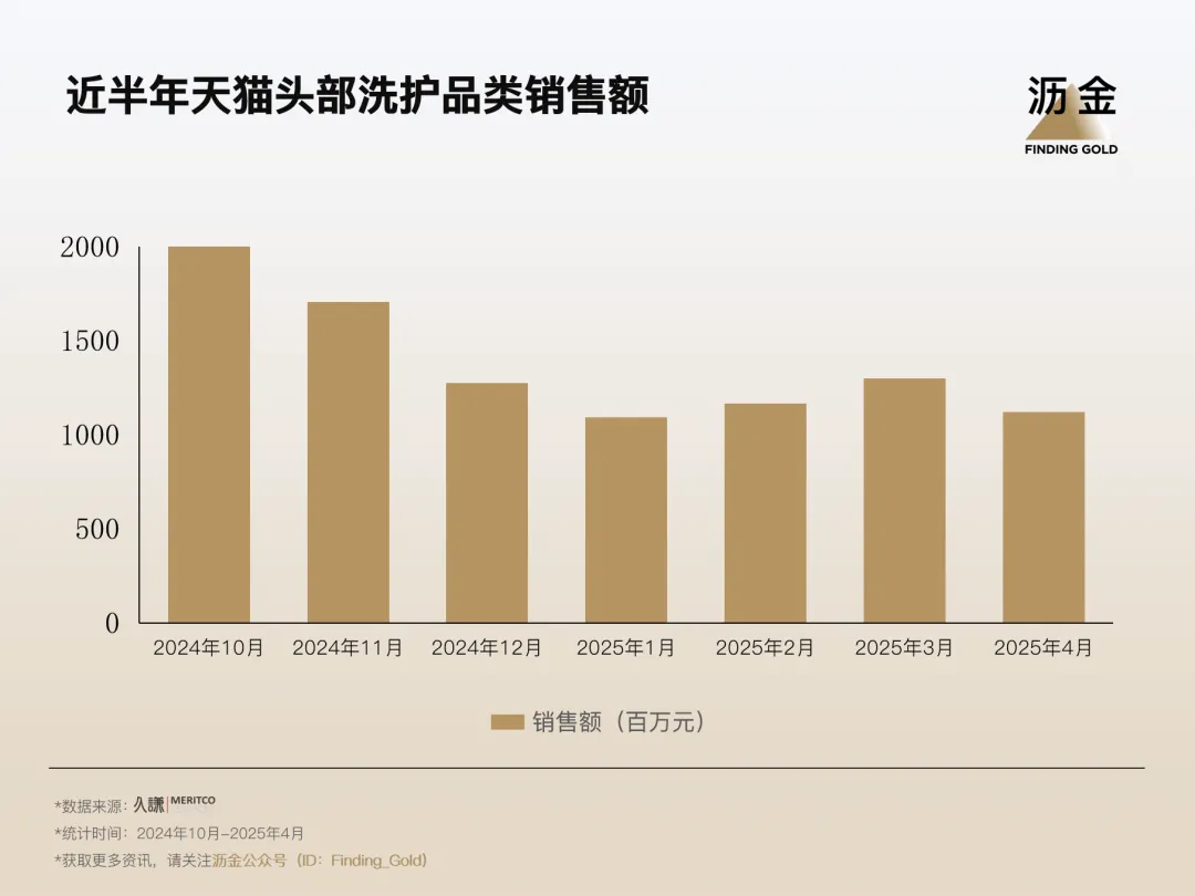 据统计,主流电商平台中头皮洗护相关赛道的增速已经放缓到9%,从天猫的销售趋势来看,品类增长存在一些瓶颈。