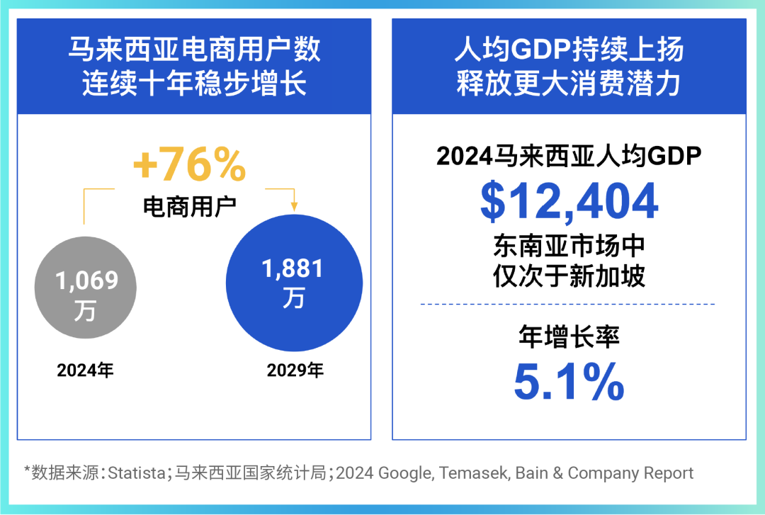 1.马来西亚电商市场规模预计2030年达250亿美元,人均GDP达1.2万美元,用户基数与经济基本面同步增长
