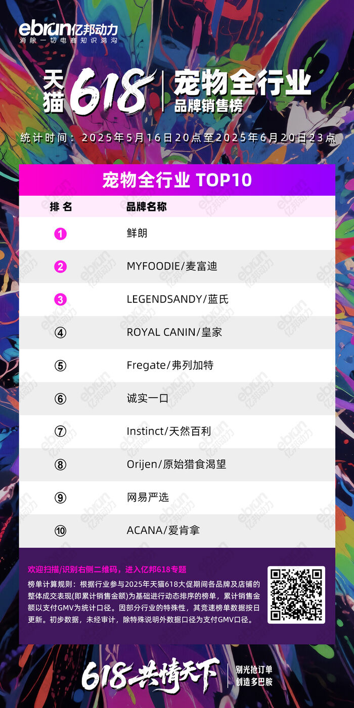 3. 品类黑马:鲜朗登顶宠物品牌榜,老铺黄金突破10亿销售额,十个勤天凭借综艺IP首战告捷。