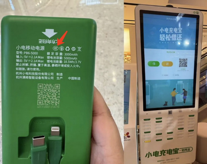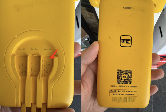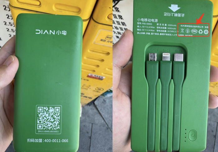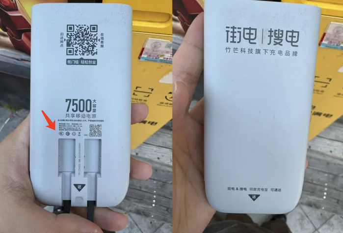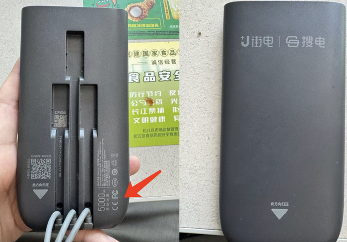 关于旧款设备的问题,街电官方客服对记者透露:“目前这种老款的公司已经在回收了,虽然充电宝机身无3C标,但是柜体侧面有标注。”