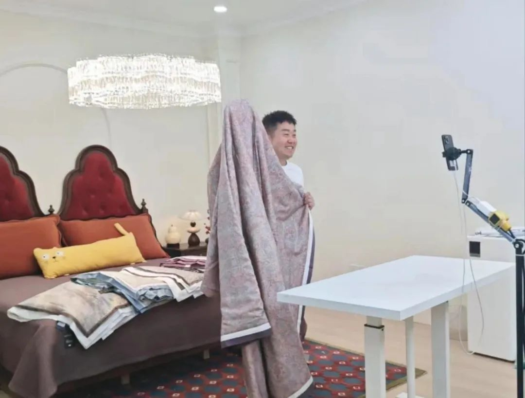 肖进鹏的直播间,就在这个园区。一位辽宁沈阳的忠实用户,6年多的时间在他直播间下单30多万元的产品。肖自称选品很严,今年做了一个新品牌亲听。在疯狂内卷的家纺行业当中,越来越多人意识到卷低价不是出路,于是做中高端产品,并通过扩充品类,服务于存量消费者。