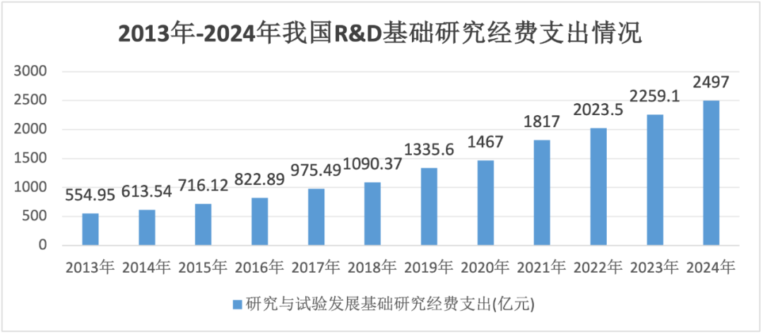 国家统计局的数据亦显示,近十几年来,我国基础性研究经费支出已经从500多亿元,增长至去年的近2500亿元,增长四倍有余。
