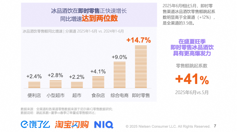 1. 新动向:即时零售渠道夏季冰品酒饮环比增长41%(全渠道仅12%),生意跳起系数跑赢全渠道,显示即买即得服务激活情绪健康猎奇三大引擎(如冰杯增273%、零卡茶增108%、冻西瓜增710%),推动消费升级浪潮。