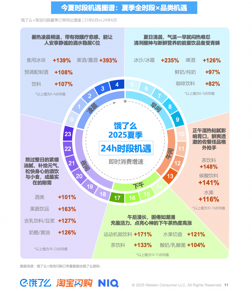 2. 渠道建设与定价:平台如淘宝闪购、饿了么通过精细化运营响应全时段需求(夜间酒类订单增101%),推出「冰冰保」创新体验,品牌可借势招商活动如冰冰有礼节升级城市玩法,定制促销匹配地域差异(东部冰沙增200%,西部凉茶增200%)。
