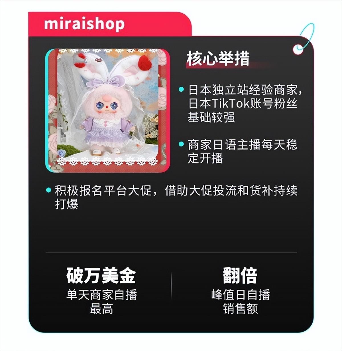 2.操作干货包括复用中日消费习惯相似的爆品和营销策略,如美妆品牌Funny Elves通过达播和自播内容矩阵达成单日破万美金;欧洲商家Katch Me采用“穿搭模板”式直播提升转化。