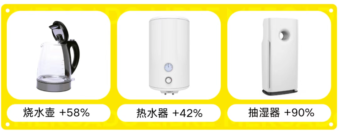 抽湿器:沿海高温高湿区(如哥伦比亚卡塔赫纳、巴西萨尔瓦多)及雨季(5-10月)销量暴增,便携式机型(<10kg)最受欢迎;