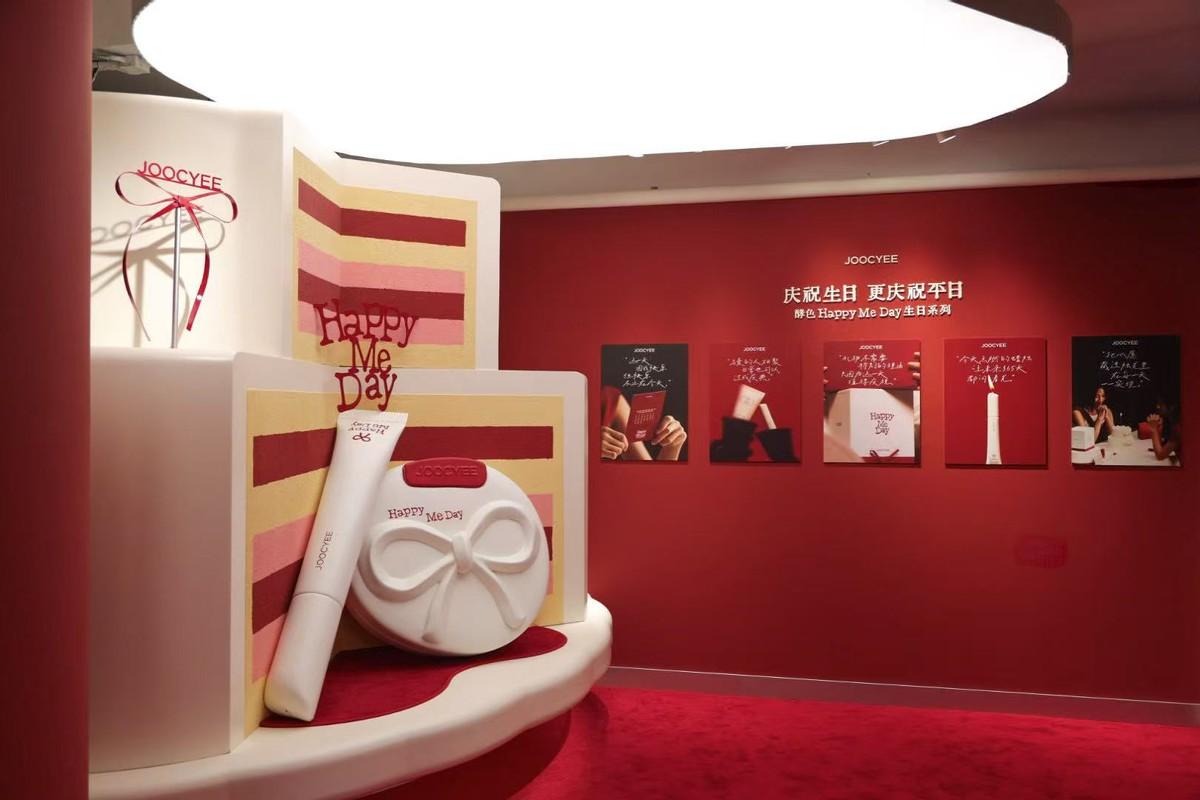 酵色「Happy Me Day」限时快闪空间以亮眼的“庆祝红”为主色调,结合巨型蛋糕艺术装置等元素,营造出热烈、沉浸式的庆祝氛围。现场特别设置互动环节:如日历签及“Me Day”打卡拍照墙,邀请参与者将私人重要时刻,转化为独具意义的浪漫纪念。