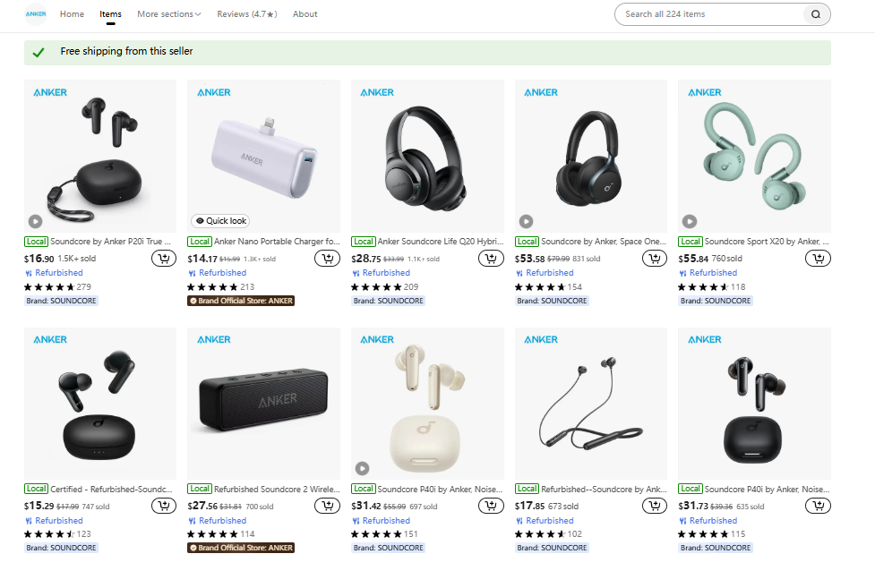 安克,尽管商品定价均显著低于亚马逊同款,但其在Temu上架的全是“翻新品”;电小二,虽然上架的是全新品,但其定价并未与亚马逊拉开差距——某原价209美元的光伏板在Temu上只便宜了13美元;追觅,选择仅上架已在亚马逊停售的入门款产品;趣倍(Tribit)则更为保守,仅在Temu上架了一款商品。