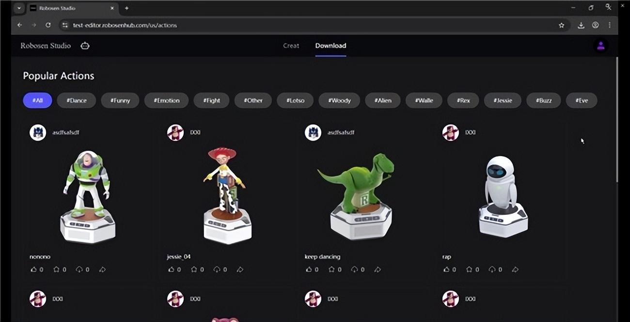 第三是生态布局。Mini Robot不仅是硬件,还兼容乐森自研的内容创作工具【乐森工坊】与玩家互动社区【乐森世界】。依托这两者,乐森正在让玩具与玩家的关系变得更具延展性——玩家可以在“乐森工坊”中为迷你机器人DIY(自定义)语音与动作,赋予玩具更具“私人印记”的个性化表达;随后,还能一键上传至“乐森世界”,与同好玩家分享这些独特的创意设定,供其他用户下载并体验,从而形成一个开放、共创的内容生态。用户甚至还可以在社区中以个人行为的方式探索WIFI联网、AI大模型交互功能,或下载第三方开发的互动内容。这使得Mini Robot不仅是“一个玩具”,更像是“一个开放生态”。