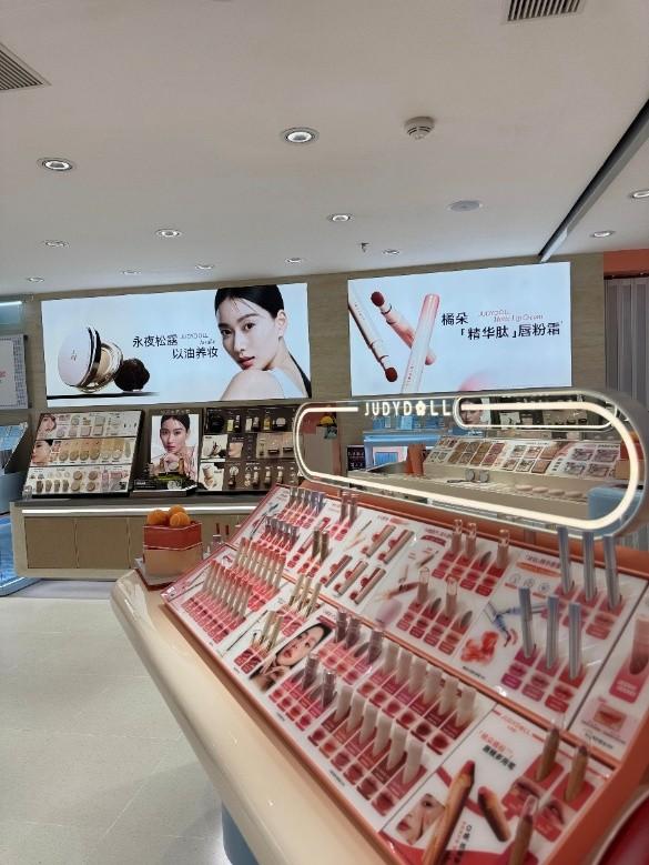 -1.重点信息:国内店位于广州天河城,采用全新设计7.0版本首发,打造沉浸式美妆体验空间;海外店落地新加坡Bugis+,陈列热门单品如高光修容盘和唇粉霜,吸引消费者打卡。