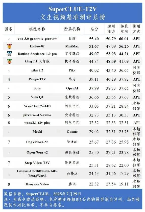 而在SuperCLUE 7月《文生视频大模型全球榜单》中,MiniMax、字节、快手均进入前五。