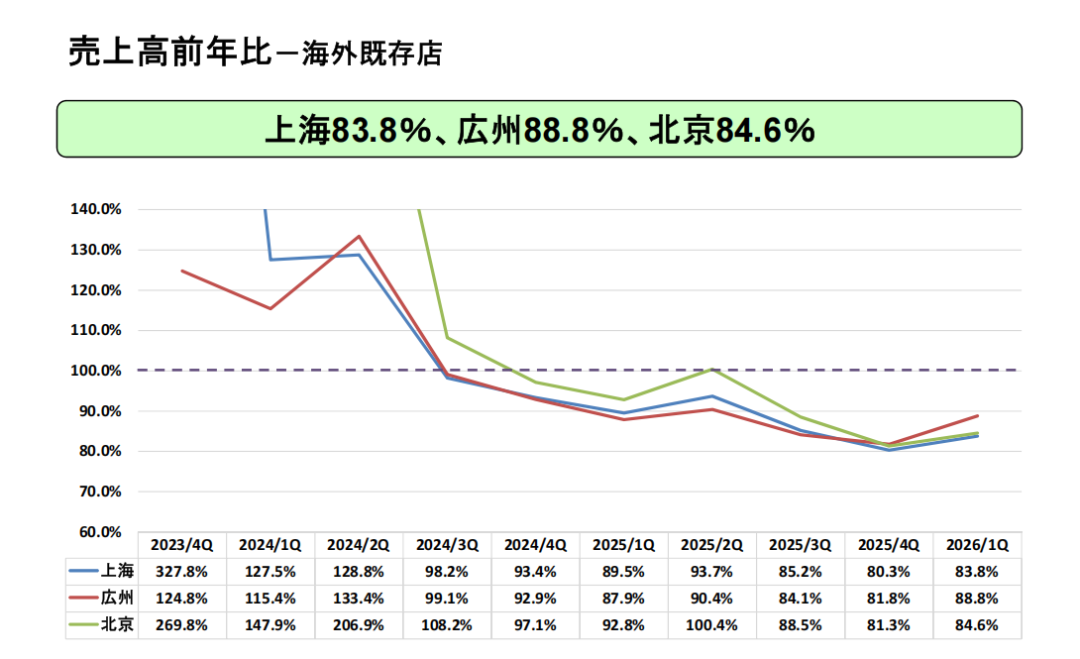 1. 2025财年北上广门店营业利润全面下滑:上海23.6%、广州27.3%、北京20.3%,主因同店销售疲软导致。