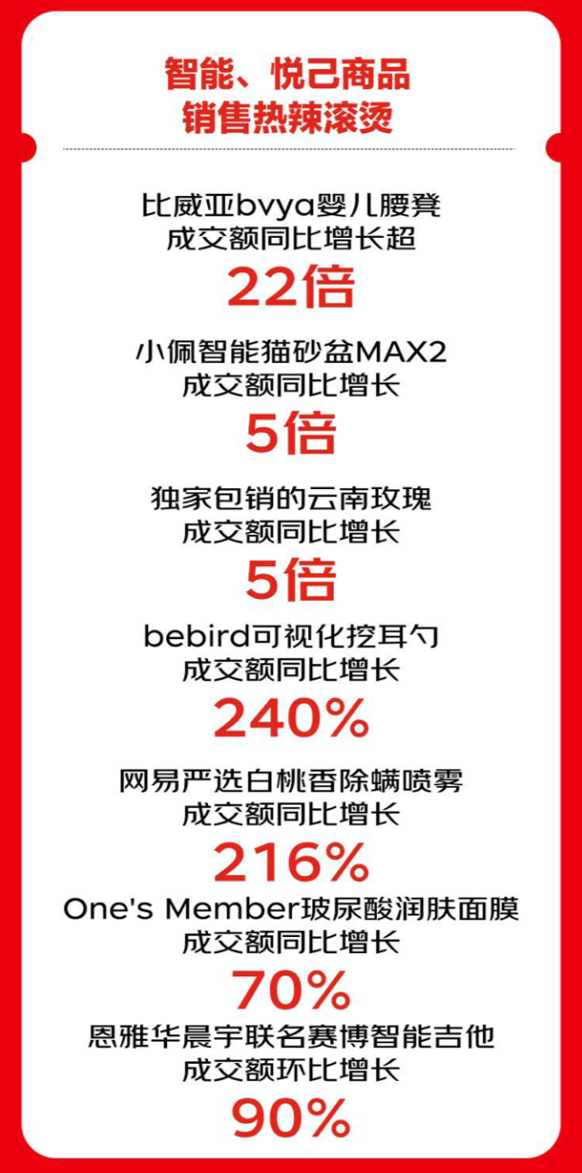 从销售数据来看,兴趣激发了消费潜能,不少新奇特商品畅销,其中,玩具品类中的科学怪兽玩具成交额更是同比增长102倍;防虫网/遮阳网成交额同比增长63倍;洗脸巾平板拖把成交额同比增长超3倍;小米米家生态智能鱼缸成交额同比增长60%。