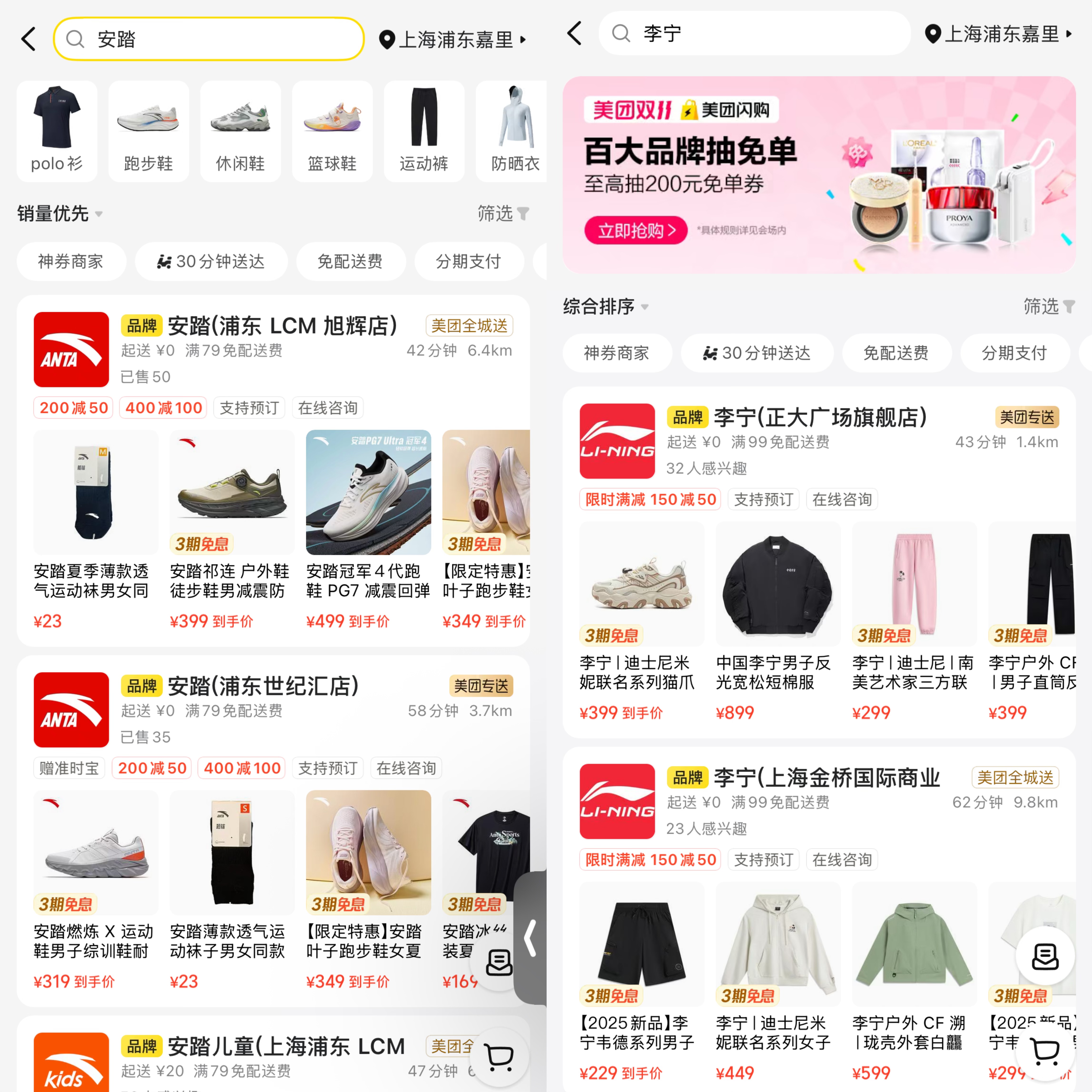 1. 品牌营销:通过美团闪购等平台增加曝光,如李宁实现全品类专业装备线上布局,覆盖不同年龄和运动场景。