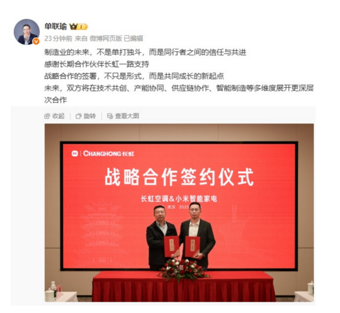 小米与长虹深化智能家电合作,展现了制造业协同发展的新模式。