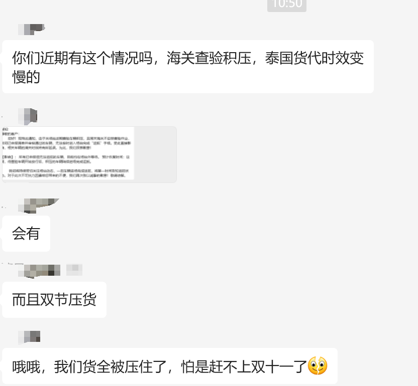 1. 近期大量卖家反馈海关查验积压,导致货代时效变慢,双十一备货滞留场站外,可能错过促销期。