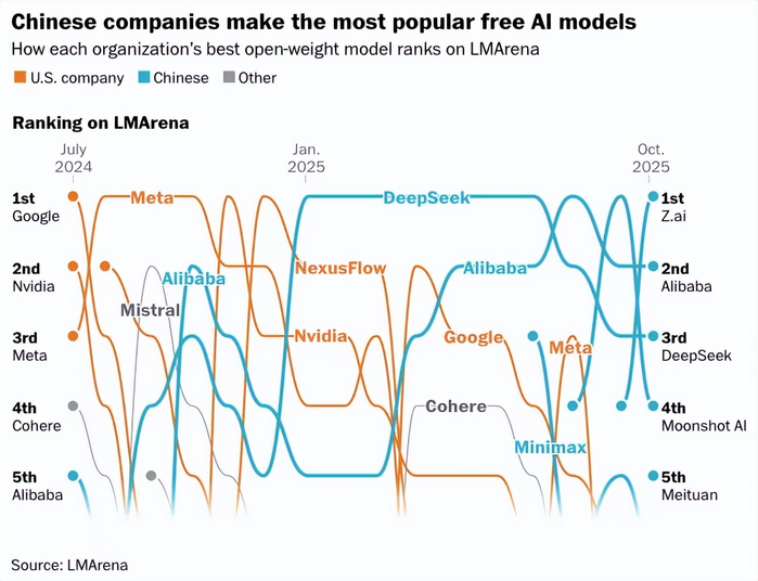 刚刚过去不久的9月,阿里、腾讯、百度等大厂几乎同步将核心模型开源,这一动作如同在AI产业投下一颗深水炸弹,涟漪迅速扩散至技术、商业与产业生态的各个层面。进入10月,公开数据显示,来自中国的开源大模型已经牢牢占据榜单前五。