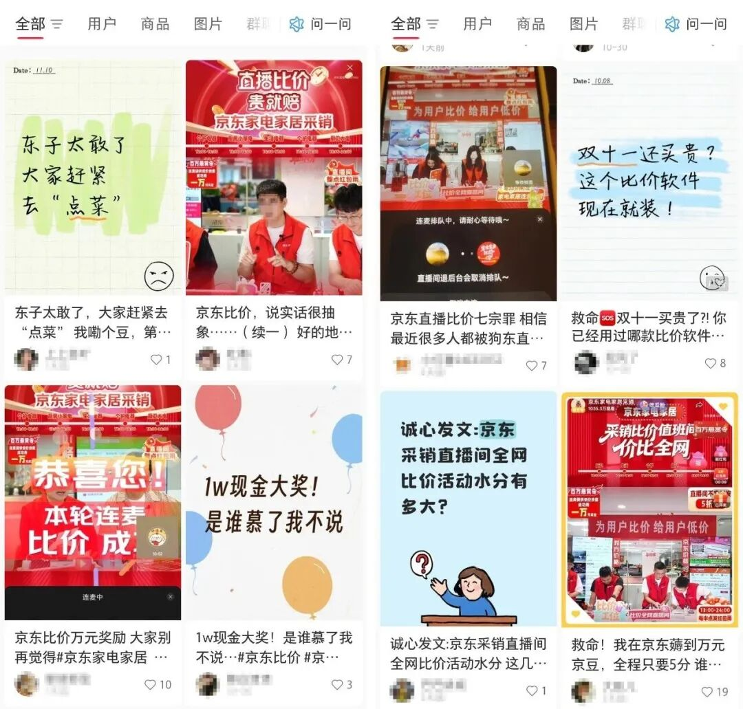 平台高调查比加剧氛围,如京东发起直播比价专区,接受用户连麦举报价差。