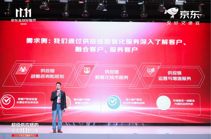 JoyAI、物流超脑等大模型与供应链的全面结合,在今年京东双11的物流运营、商家经营与消费者体验等多重环节展现关键价值,太璞数实一体供应链解决方案助推各行业供应链数智化升级,实现降本增效。