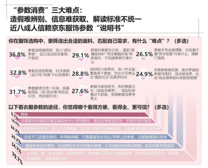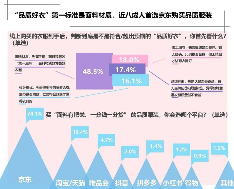1. 产品生产和设计需求:消费者70%关注面料材质和充绒量,工厂需优先生产高品质面料产品;设计需注重百搭性和价格合理性,如JD FASHION强调的严选标准。
