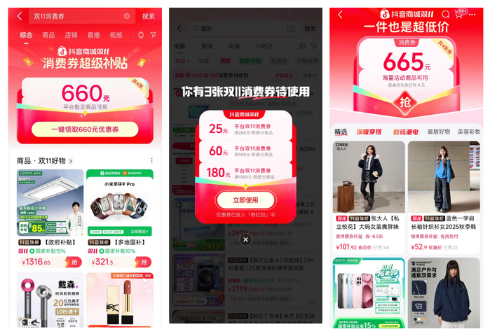 搜索是货架场的核心场景。2025年抖音电商日均搜索PV冲破5亿,其中看后搜就贡献了30%的抖音电商搜索量。在今年双11大促周期内,搜索已然成为生意核心增量空间,搜索销售额在双11当日破峰爆发209%。