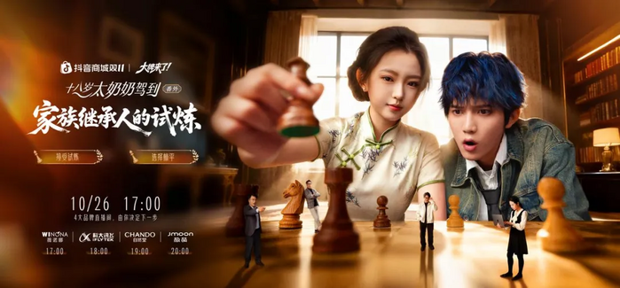 今年双11,抖音电商“大牌来了”联手短剧IP《18岁太奶》,把科大讯飞等四大品牌的直播间,巧妙化作热门短剧剧场。由剧中主角“重孙纪舟野”和“太奶奶”现场演绎“双11限定的番外”,成功将剧粉转化为品牌直播间的粉丝。