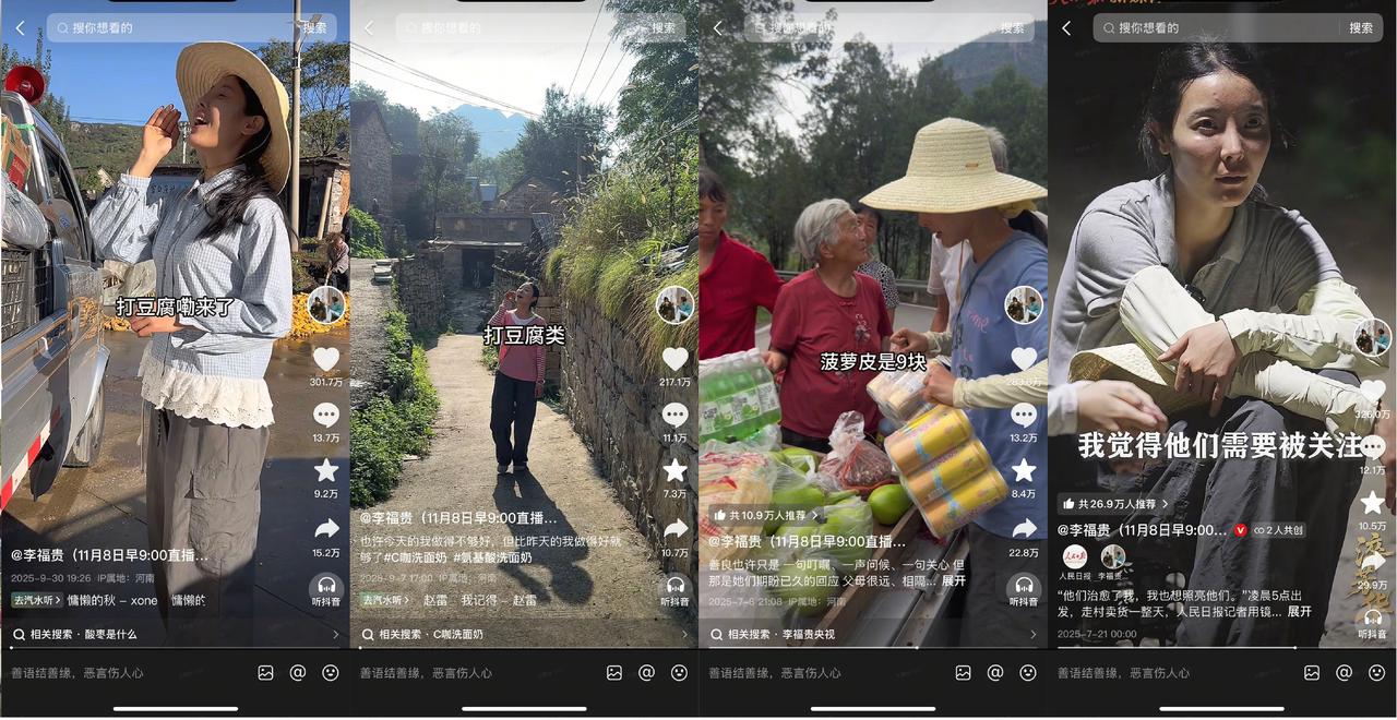 李福贵就是一个典型的例子。她是从河南大山里转型抖音电商的“三农”优质内容达人。她用朴实的镜头记录乡村的点滴日常,传递出“虽有困难,但更有战胜困难的勇气和力量”信念,让屏幕前的用户深深为之动容。她的一条进村收小米的视频,浏览量就高达3900万次。