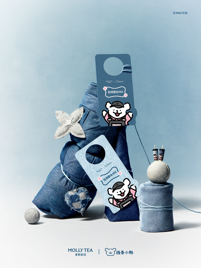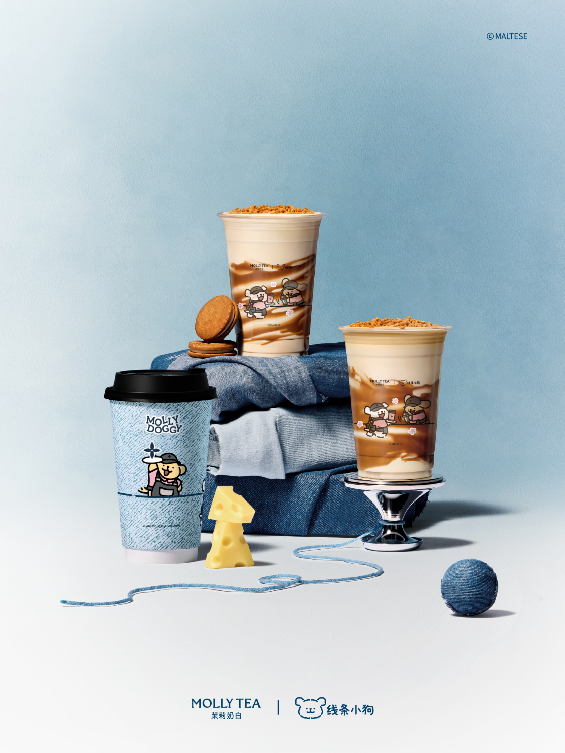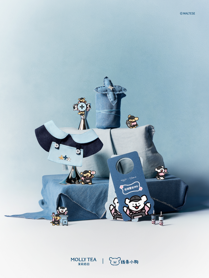 1.联名以“小狗主理人Molly Doggy”为主题,赋予IP调茶师、店长等新角色,打造限时营业场景,增强趣味参与感。
