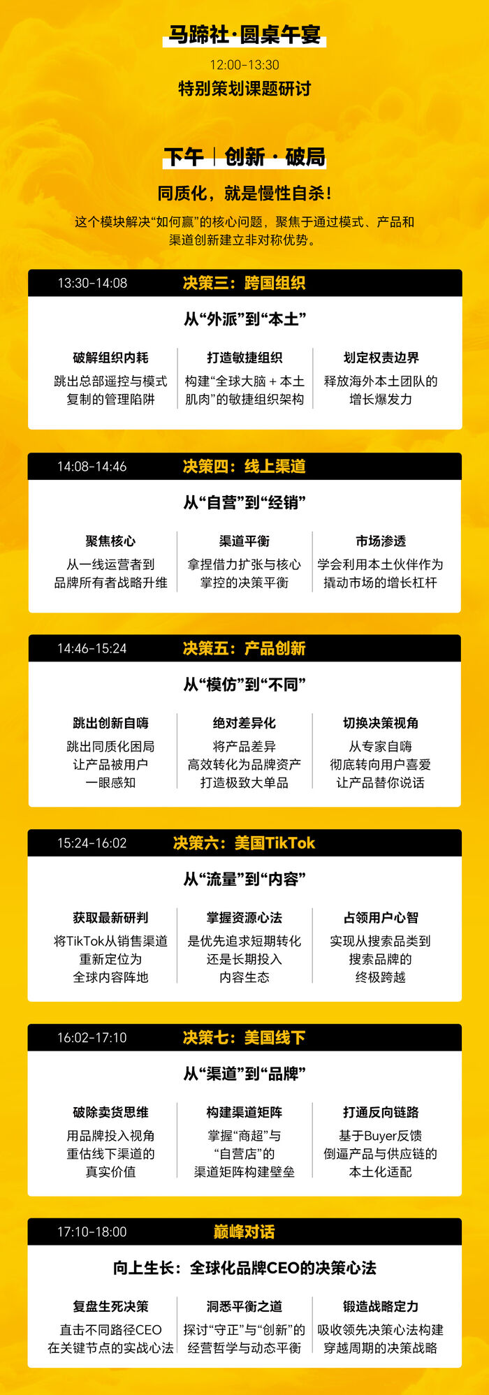 3.商业模式:七大决策如价值之问和增长之问倡导使命驱动而非财务导向,提供从模仿到原创的商业模型,增强全球竞争力。