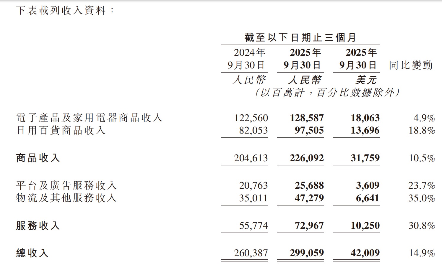1.收入达2991亿元,同比增长14.9%,其中日百品类收入连续四季度双位数增长,用户需求旺盛。