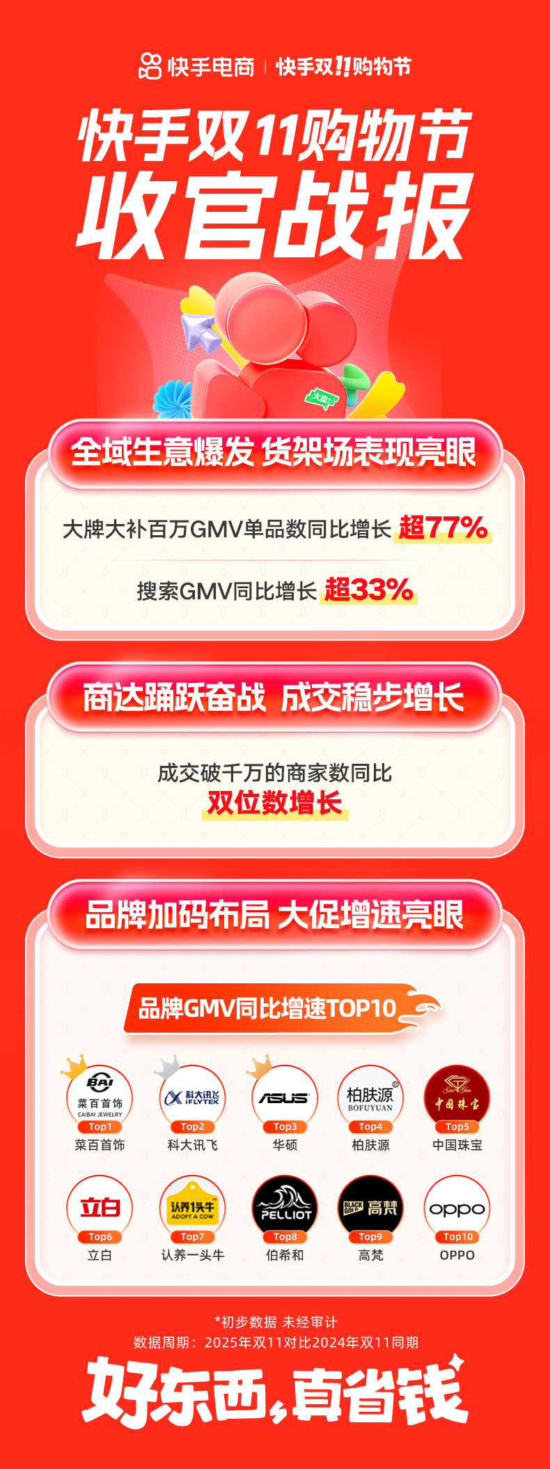 总1:快手电商双11提供增长市场机会和最新商业模式参考。