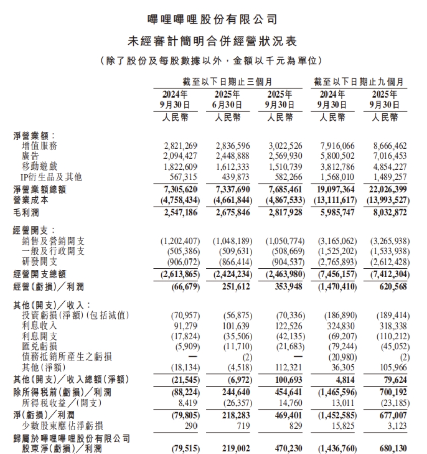 B站Q3财报显示盈利大幅提升,但核心业务增长放缓同时双11数据隐匿引发关注。