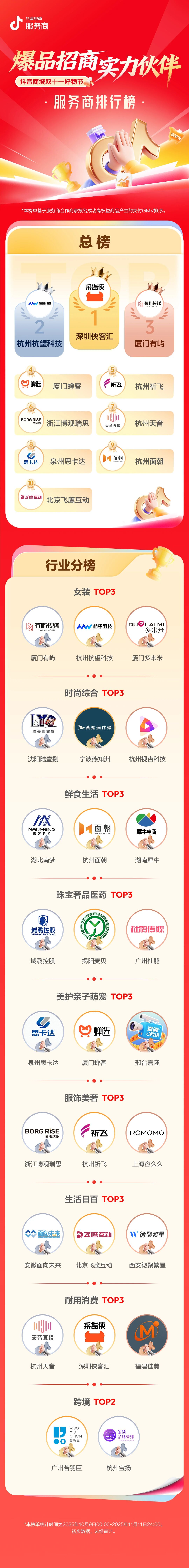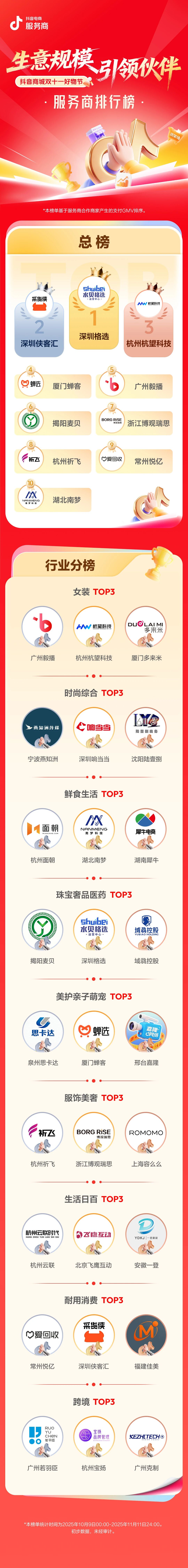 抖音电商双11服务商排行榜发布,提供关键数据和实操干货。