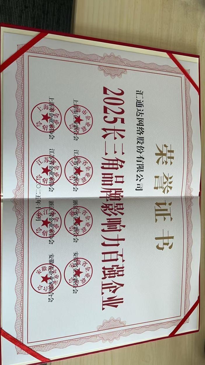 汇通达网络获评长三角和江苏百强企业,体现其市场影响力与经营成果。