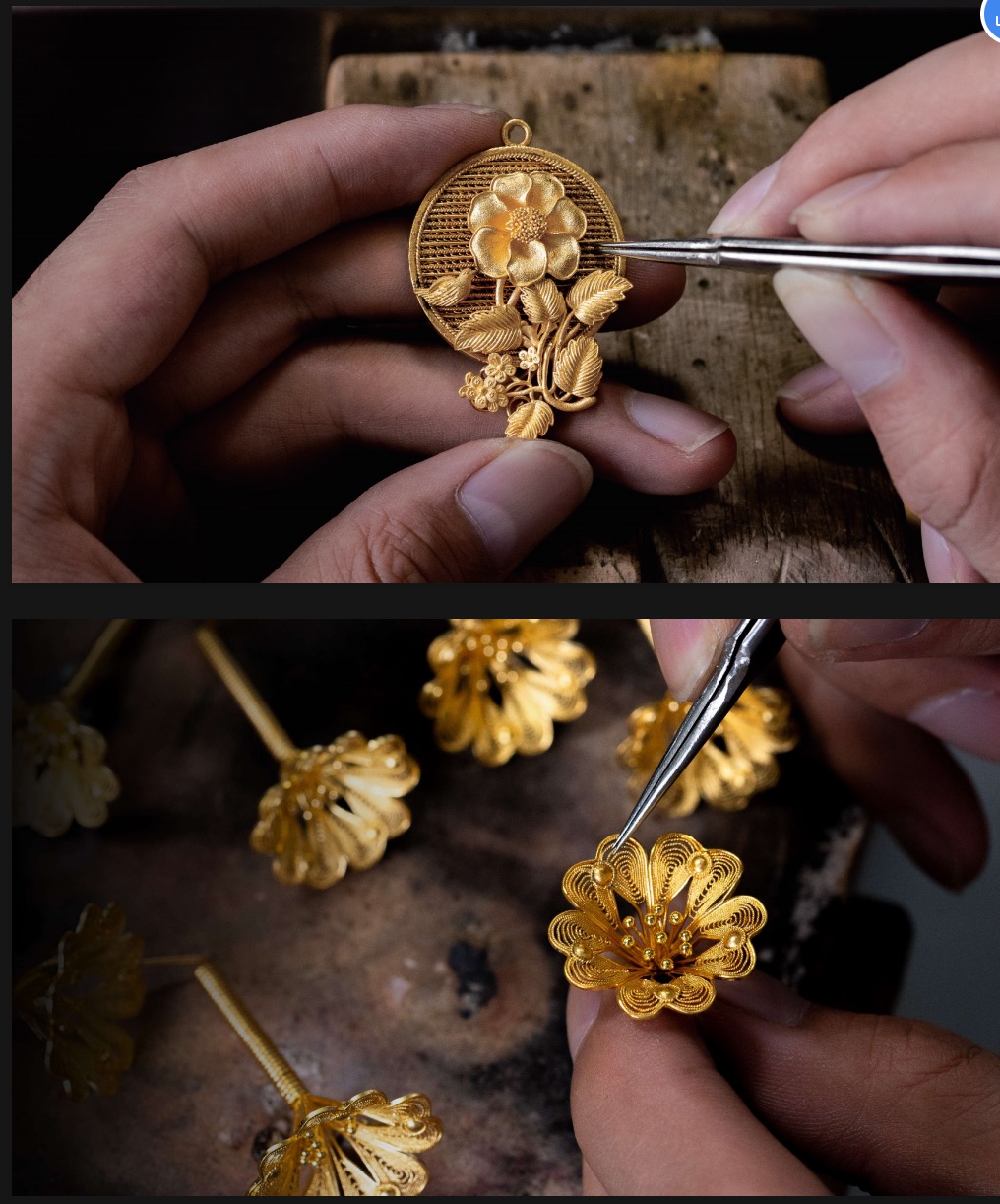 1. “寶蘭”强调花丝镶嵌非物质文化遗产技艺,这为工厂提供生产需求点,如传统打金技艺和当代审美结合,需高技能工匠和精密工艺,从创始人金器工坊经验中可学习。2. 老铺黄金的高工艺溢价(收入123.54亿,利润22.68亿)和周大福的“传承”系列案例,表明市场对古法设计偏好,工厂可研发类似工艺产品迎合需求。