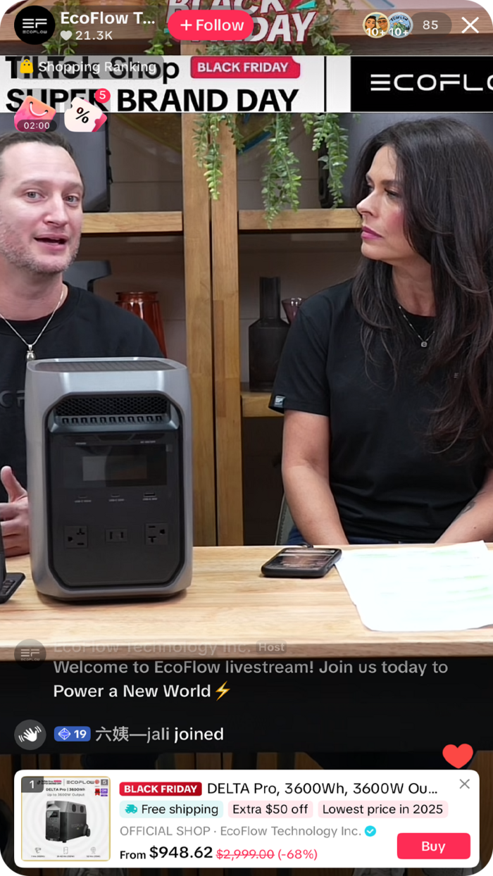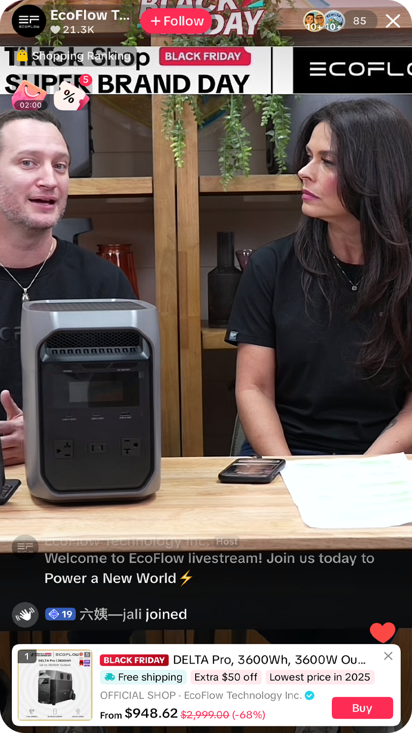 1. 品牌营销策略:通过内容场实现高效曝光和转化,如TikTok Shop“超级品牌日”活动,Ecoflow日均GMV突破70万美元,黑五期间超千万美元;POP MART、Fanttik等头部品牌生意爆发超100%,建立信任的专业讲解和场景化视频矩阵是关键。
