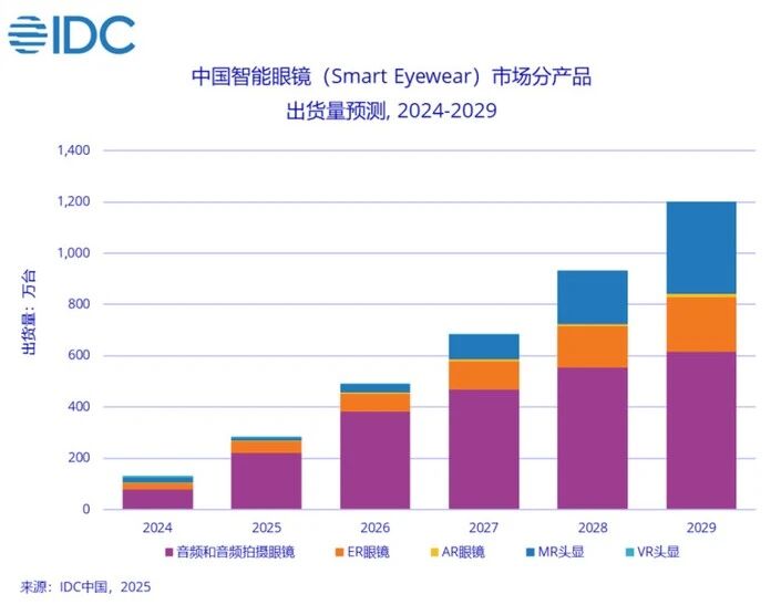 IDC预计,2025年全球智能眼镜市场出货量将达到1451.8万台,同比增长42.5%;中国市场的增长更为迅猛,出货量预计达290.7万台,同比暴涨121.1%。618期间,京东平台AI眼镜成交量同比增长7倍;“双11”,天猫平台智能眼镜品类成交额更是实现了同比2500%的增长。