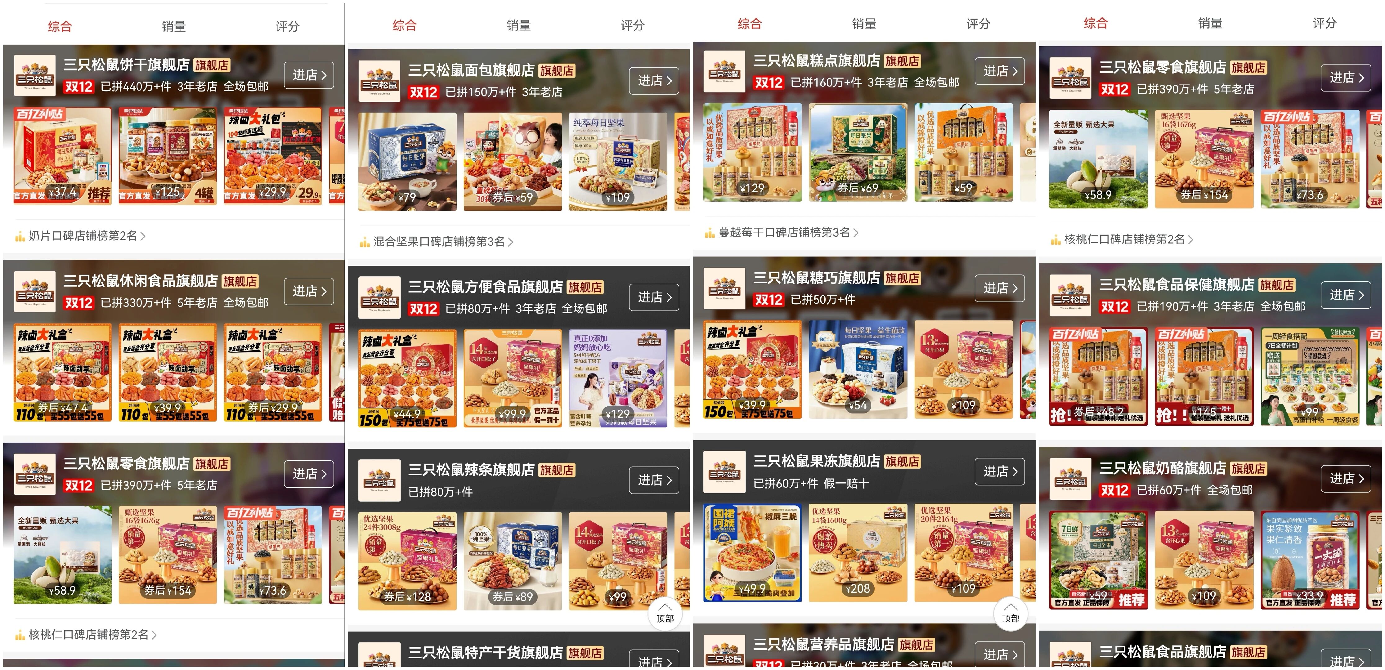 消费环境变化、传统电商渠道增长失效,2023年下半年,三只松鼠重点投入拼多多。而在此之前,三只松鼠在传统电商平台主打大店模式,日销百万、千万甚至过亿。但在拼多多,他们发现,以前的大店模做起来非常吃力。在和不少同行交流之后,三只松鼠转而开始尝试店群模式。