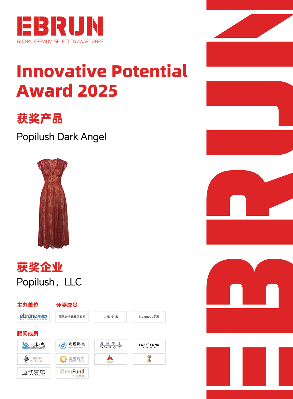 Popilush荣获2025 EBRUN全球好物Innovative Potential Award,其产品Dark Angel创新融合复古美学与现代塑身功能。