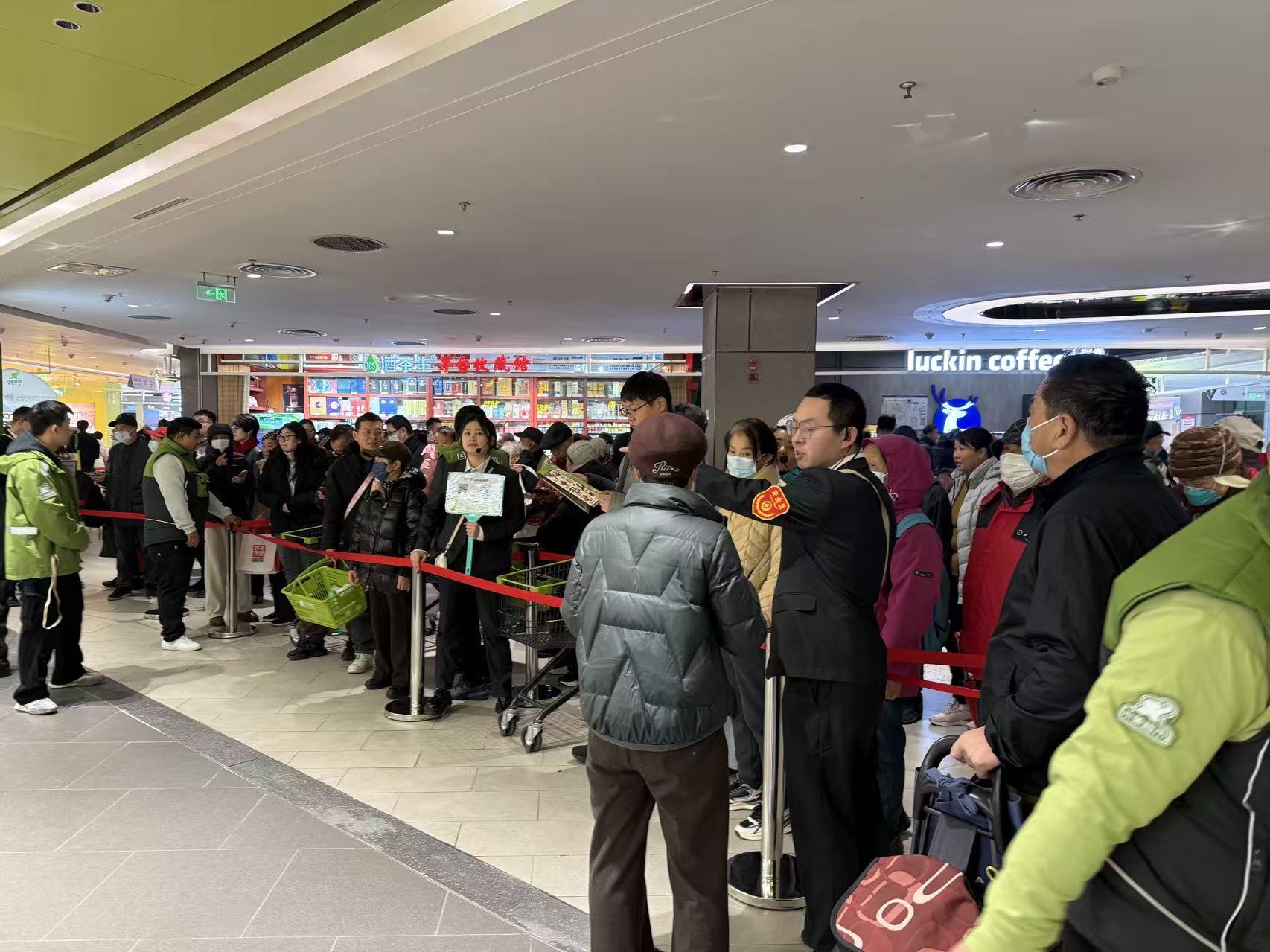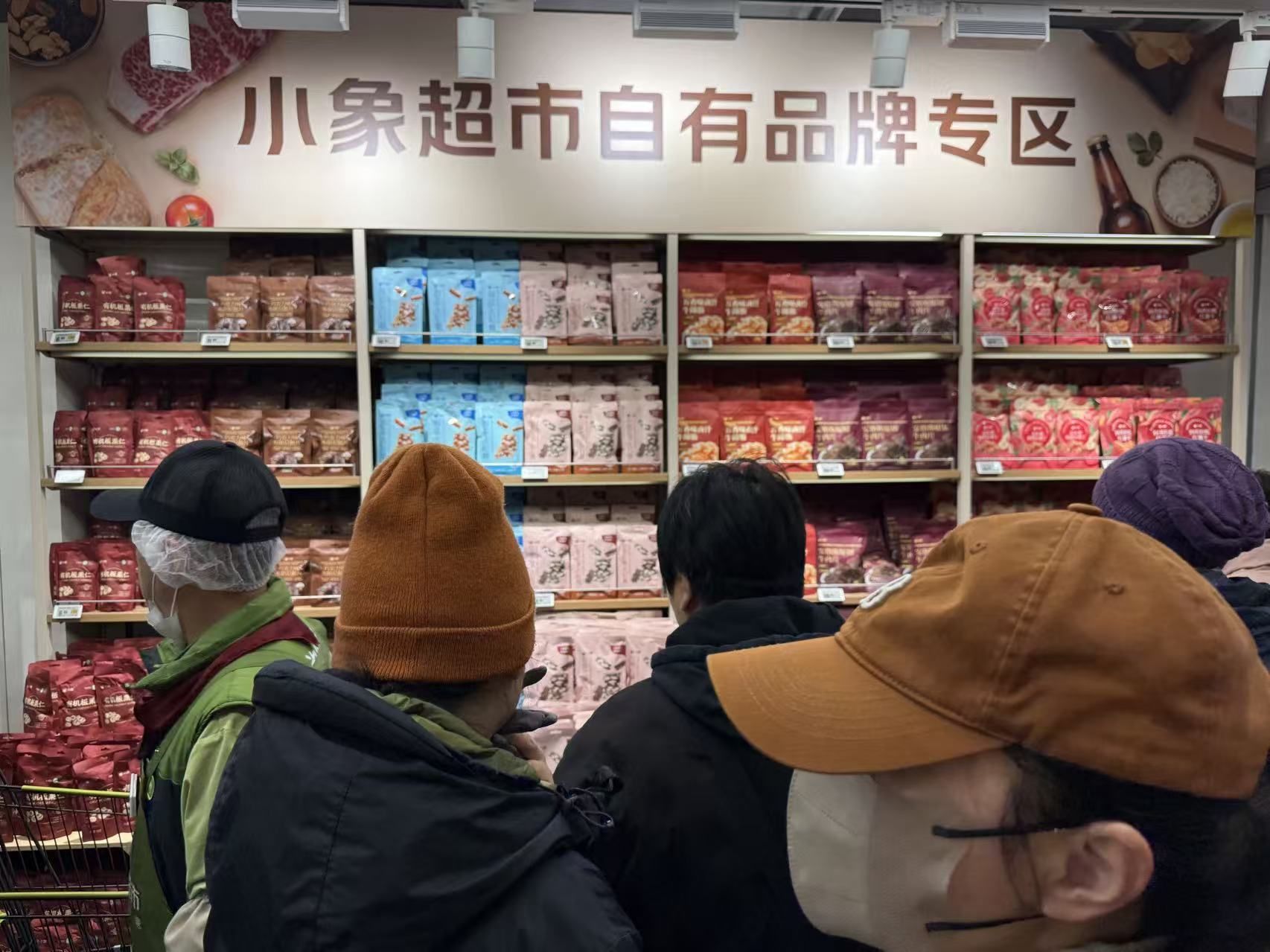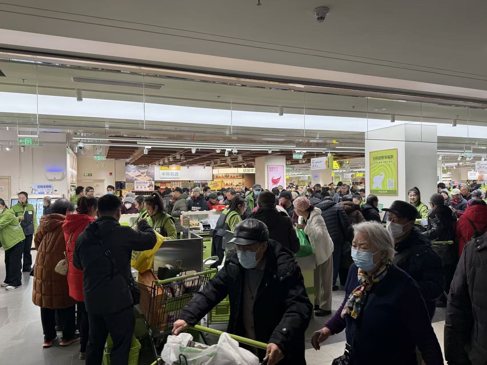 按照指示牌走到小象超市,人多到要拉红线分流。从早上七点半开张,一直到下午一点多,人潮依然熙熙攘攘。但真正走进去,会发现一种“熟悉又陌生”的混搭感。