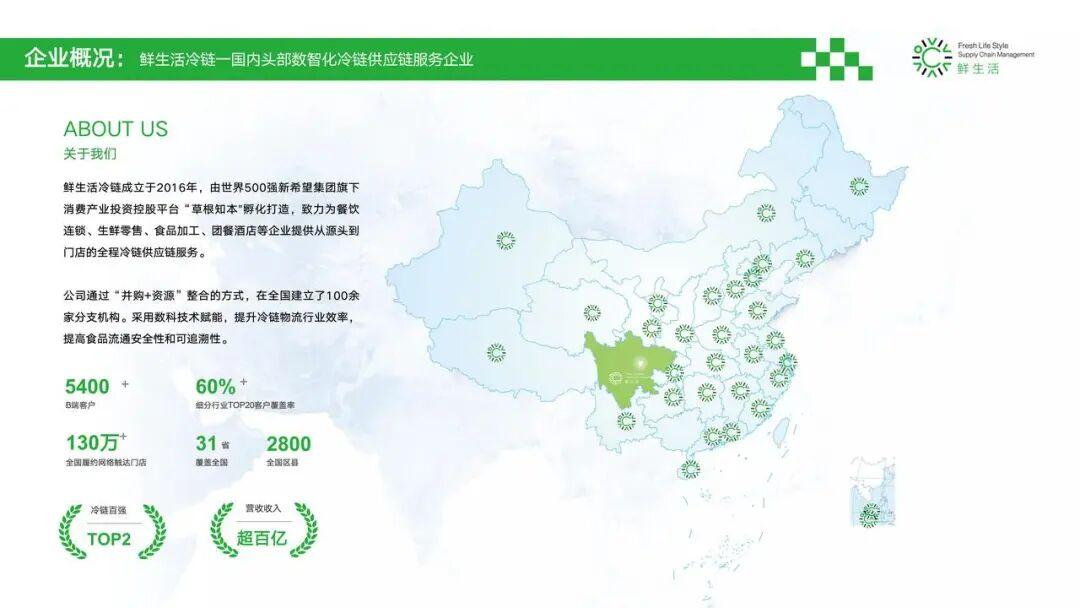 1.鲜生活冷链覆盖全国31省、2800区县、130万门店,提供“死损包赔”等高标准服务。