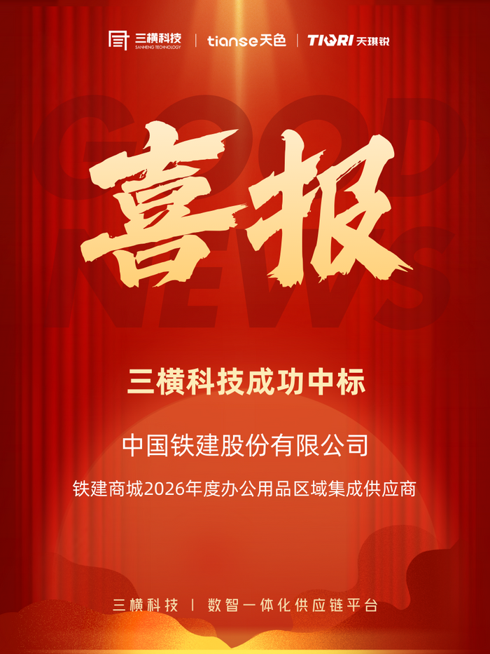 三横科技中标铁建商城2026办公用品集成供应商项目,覆盖华南区域(广东、海南、广西、福建),提供一站式办公用品采购服务。