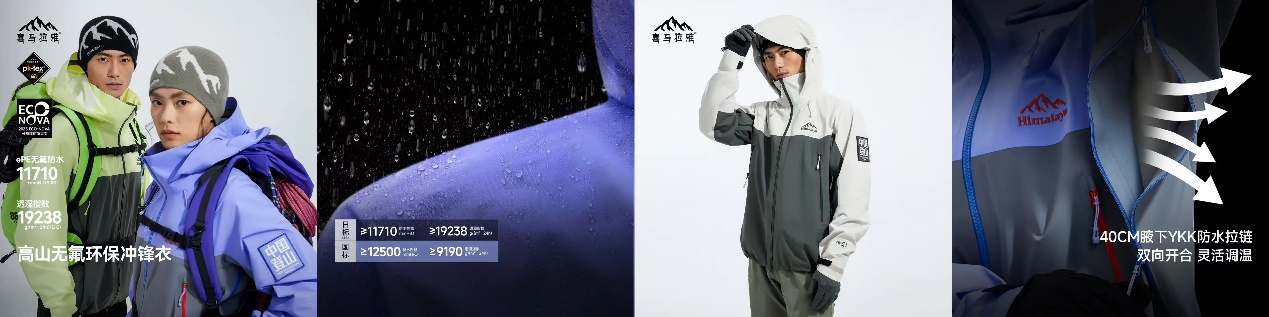 3. 展会新品如喜马拉雅H5500攀山壳硬壳冲锋衣采用防水透湿面料,搜索“喜马拉雅冲锋衣”可加购享12期免息和赠品好礼。