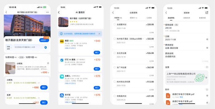 1. AI差旅服务实现员工免报销:员工出差一句话规划行程,复杂路线30秒生成方案,自动创建出差单;无感报销功能通过高德打车和支付宝企业码,员工叫车后发票自动关联审批单,无需垫付费用。