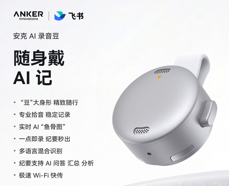 恰是在“群雄逐鹿”的背景之下,安克创新与飞书联手,高调推出了AI录音豆这款形态迥异的新品。