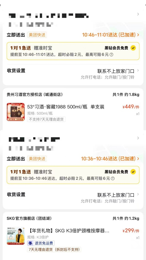 2.订单集中在冰品、母婴、日用百货等高时效品类,以及数码、白酒等高价值礼赠商品,满足即时需求。